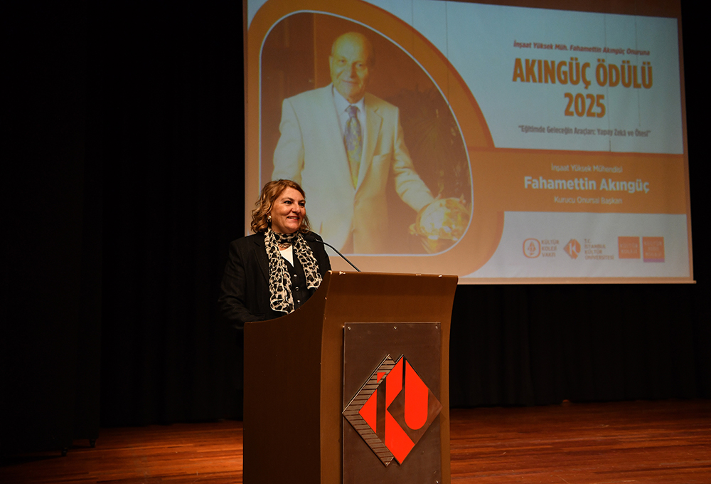 Törende konuşan İstanbul Kültür Üniversitesi Rektörü Prof. Dr. Fadime Üney Yüksektepe, Akıngüç Ödüllerinin 2016-2017 akademik yılında Akıngüç Ailesinin desteğiyle hayata geçirildiğini belirterek; bugüne kadar hukuk, sanat ve temel bilimler başta olmak üzere pek çok alanda bilim ve kültür dünyasının değerli isimleriyle buluştuklarını ifade etti. 2025 yılı ödül temasının, eğitimin geleceğini şekillendiren temel dinamiklerden biri olan yapay zekâ ekseninde belirlendiğini vurgulayan Prof. Dr. Yüksektepe, başvuru sürecine katılan tüm çalışmaların ülkemizde eğitimin geleceği adına umut verici nitelikte olduğunu söyledi.